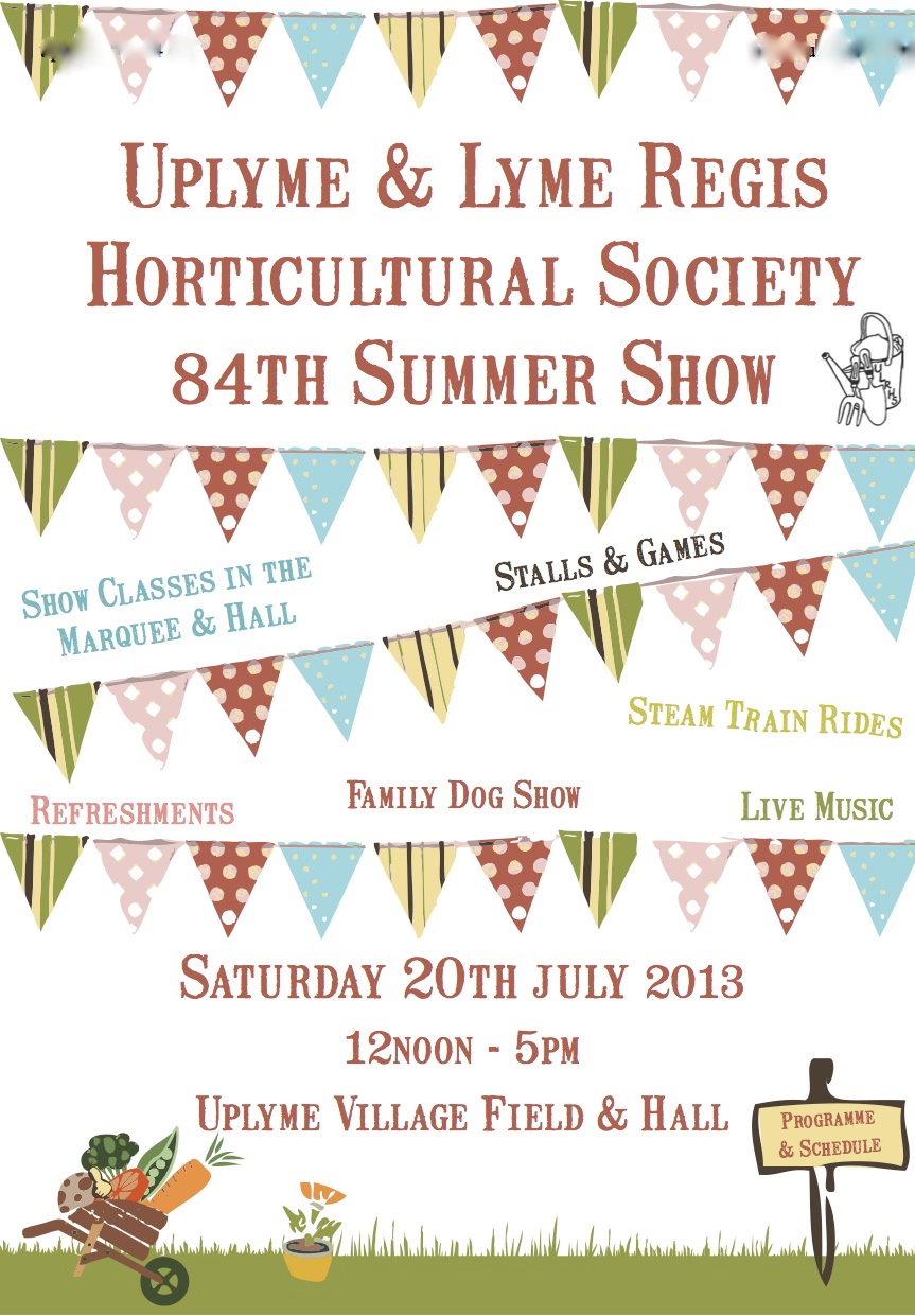 84th SUMMER SHOW & COUNTRY FAYRE 12noon to 5pm (note the earlier opening time this year) at Uplyme village hall, playing field and marquee. Entrance £2.00, car parking free.