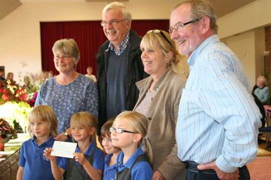 A £700 cheque was handed over to Mrs Ethelston’s School Building Fund by Uplyme and Lyme Regis Horticultural Society chairman Jenny Harding at their Autumn Show on Saturday, October 11th. Accepting the donation were headteacher Mary-Anne Crafter and pupils, chairman of trustees Neil Pullinger and treasurer Martin Whitehead.